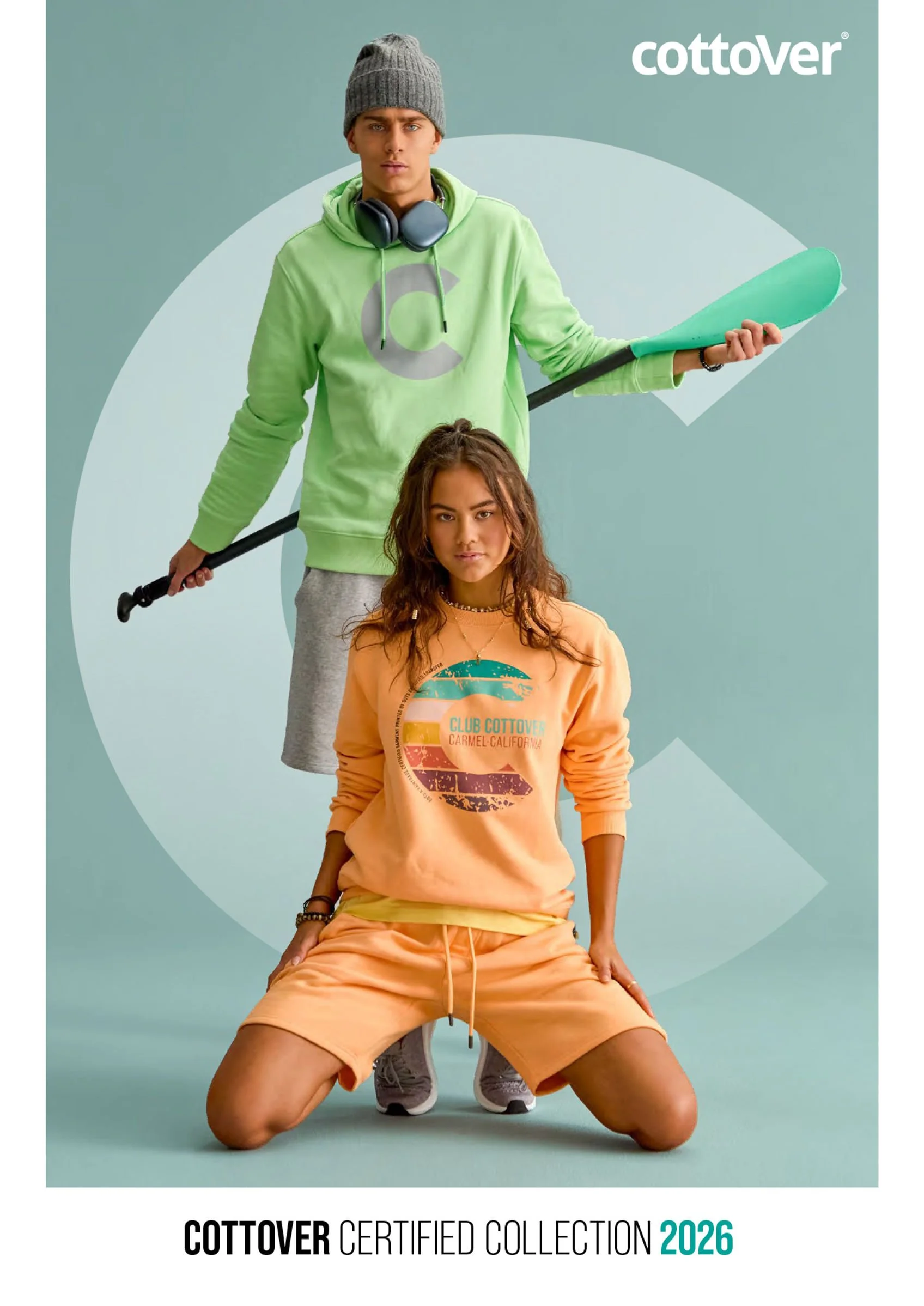 Sertifioiduista luomu- ja kierrätysmateriaaleista valmistetut unisex-collegetekstiilit.